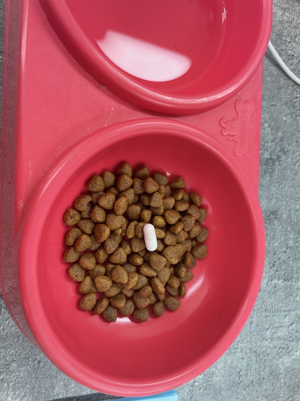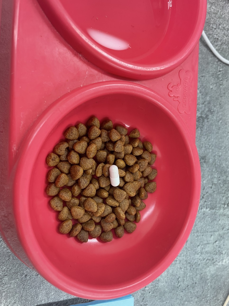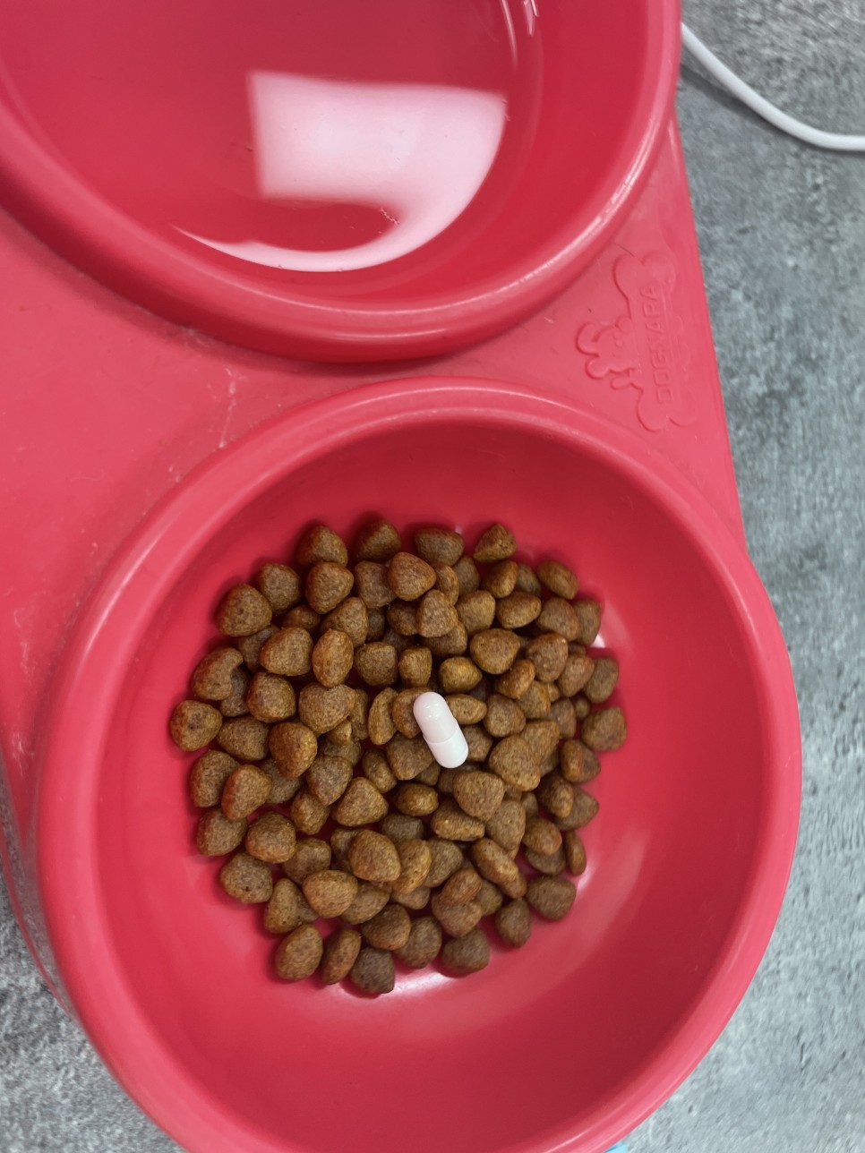 저는 알약 그대로 주기도 하고 가끔은 밥에 섞어 주기도 했습니다.간식 사이에 살짝 끼어도 정말 잘 먹거든요