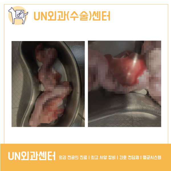 저희 인오의 자궁축농증 수술은 부산 24시 동물병원 UN동물의료센터의 외과수술 전문 유성환 대표원장님께서 책임지고 집도해 주셨습니다.UN동물의료센터는 수술 전 마취 안정성 검사를 꼼꼼히 실시한 후 호흡 마취로 안전하게 수술이 이루어집니다.