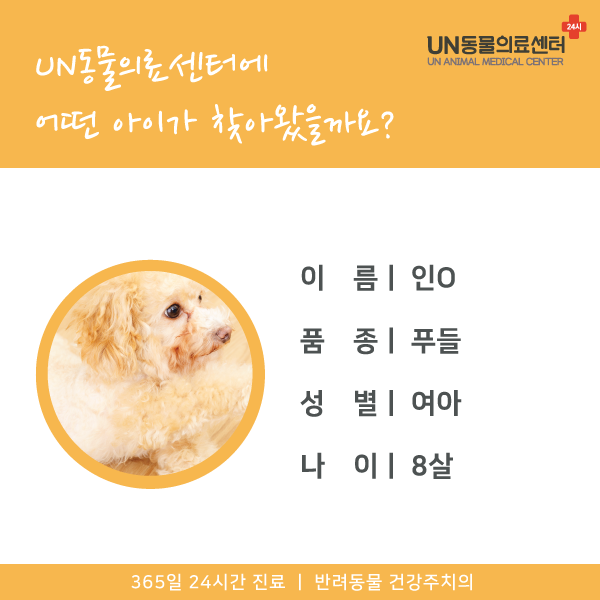 유엔동물의료센터는 24시간 주치의가 진료하고 있습니다.응급, 응급상황이 발생하거나 질병이 의심되는 경우에는 언제든지 내원하세요.