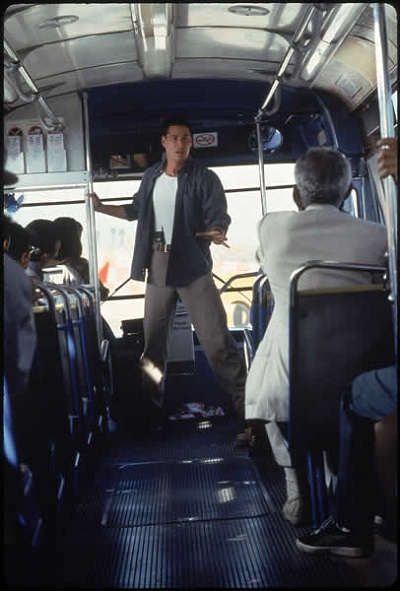 이버스는납치되었습니다라고하는데하필이면그안에이와상관없는다른범죄를저지른범인이타고있다가나를잡으러온줄알고총을꺼내어다툼을하다가버스기사가총상을입어운전을할수없게되고버스의시속도50마일이하로내려갈위기에처했지만
