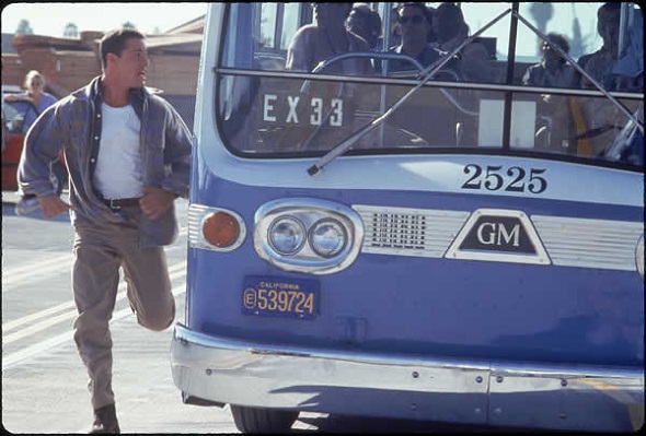 다행히 애니(샌드래브록)가 그 운전대를 잡게 되는(과속으로 운전하지 못한 전력이 있는) 오히려 도움이 되는 상황인지는 모르겠지만 어쨌든 계속 버스는 달리면서 중간에 막히는 구간에서도 차를 부수고 마이웨이한다.