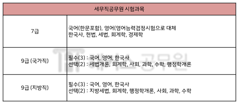 세무직과 관세직 모두 세금과 관련된 직무를 수행한다는 공통점이 있습니다. 그래서 필기 교과목도 많이 겹칩니다. 세무직 9급 지원자는 국어, 영어, 한국사, 세법, 회계학으로 응시할 수 있습니다. 다만 이것은 국가직 필기과목으로 지방직 수험을 할 때는 국어, 영어, 한국사, 지방세, 회계학으로 응시해야 합니다. 세법과 지방세는 엄연히 다른 교과이기는 하지만 상당히 유기적이어서 세법의 내용을 바탕으로 지방세법 학습까지 계속할 수 있습니다. 실제로 세무직에 도전하는 많은 수험생들은 국가직 필기 일정까지 세법 위주로 공부를 하고 국가직 필기를 마친 후 지방세법 공부를 시작하는 경우가 많습니다. 이러한 전략을 이용해도 합격할 수 있습니다.관세직에 지원하는 수험생은 국어, 영어, 한국사, 관세법 개론, 회계원리를 공부해야 합니다. 세무직-관세직 2022년 경쟁률 비교
