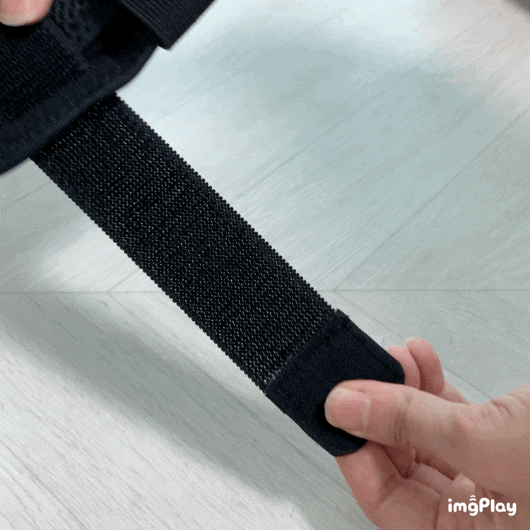 손목 보호대에 손을 넣고 엄지손가락을 구멍에서 분리합니다.벨크로를 당겨 원하는 압박 정도로 당겨 붙이면 착용 완료가 되겠네요.혼자서도 착용하기 쉽고 원하는 강도로 조절할 수 있어 물에 닿을 때 외에는 보호 및 서포트 역할을 저도 항상 사용하고 있습니다.
