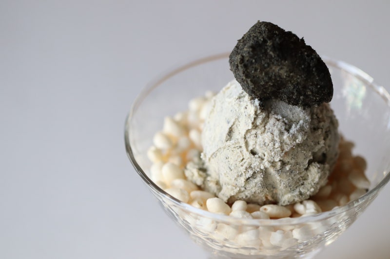 신메뉴 [흑크림]흑깨 아이스크림 우유 100g 설탕 70g 생크림 540g 노른자 2개 흑깨가루 20g 도라지정과 1개