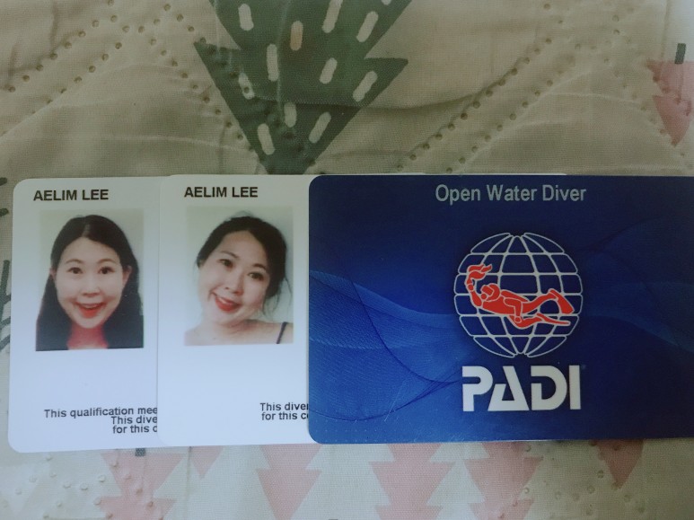 나중에 태국 코타오에서 나이트록스 자격증을 하나 더 땄고 자격증이 3개다. 두번째 사진이 세부에서 딴 자격증. 눈에 초점이 없는 것이 멘탈이 붕괴되고 있음을 알 수 있다.웃음