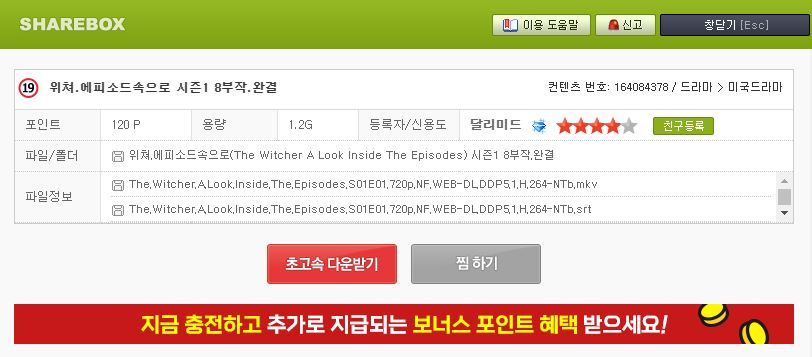 넷플릭스위처2는 제작은 한다는 소식은 있지만 언제 나올지는 예정이 없었어요. 그래서 저는 시즌1을 이 웹하드 사이트에서 찾아보고 있는데 보고 싶은 작품만 골라볼 수 있다는 장점이 있어서 굳이 정기구독료를 내고 볼 필요는 없었거든요. 제휴 콘텐츠의 경우 카드 마일리지와 OK캐쉬백을 포인트로 전환해 볼 수 있다는 장점이 있다.