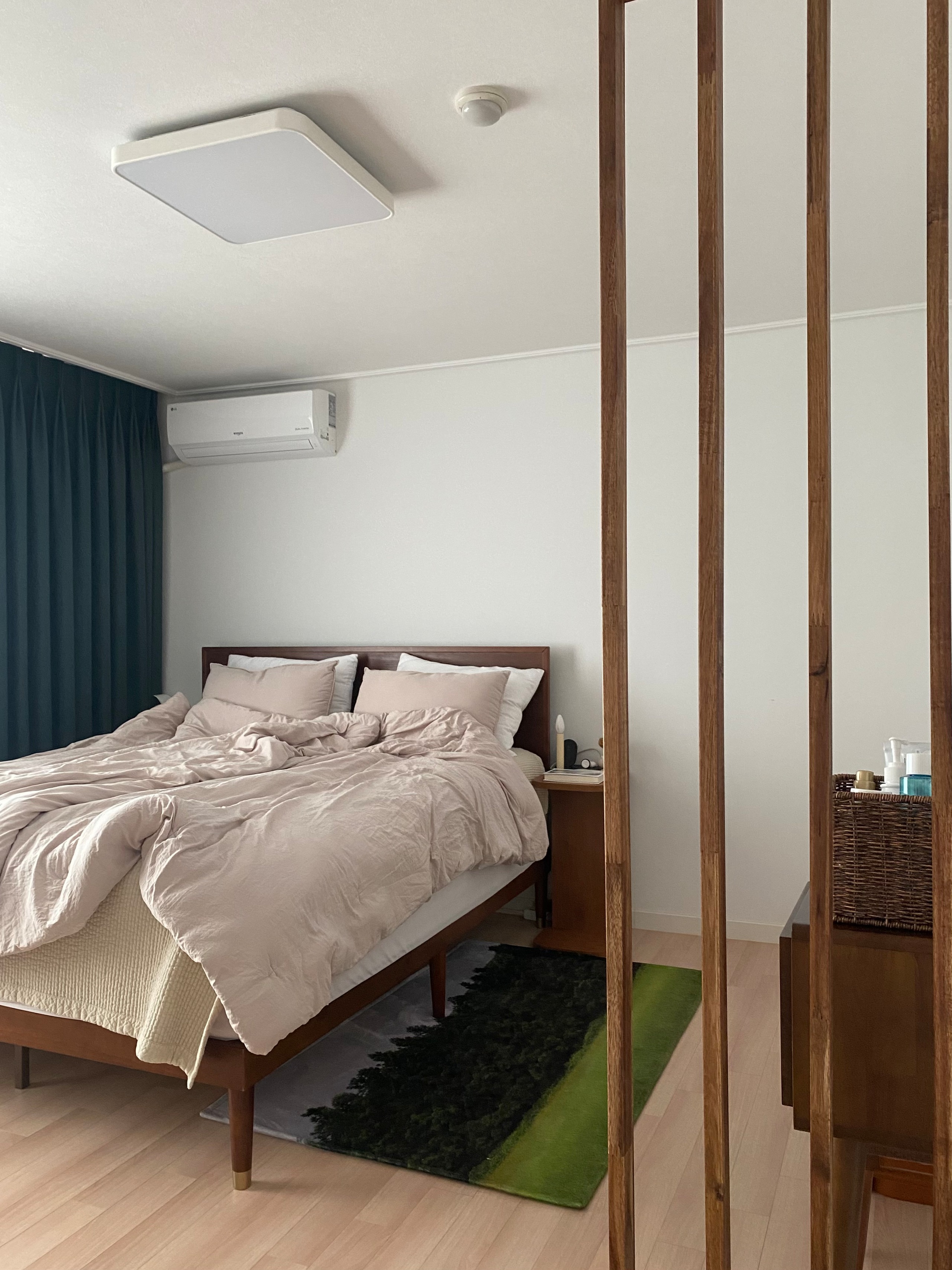 이 식당 공간도 침실에서는 잘 보이지 않고 현관, 부엌에서도 잘 가려집니다.높이를 바꾼 수납침대가 이 예쁜 집에서는 제대로 효도 아이템이 됐죠?~이제 거실도 보실건데~ 거실은 현관위주로 다이닝룸 맞은편에 배치되어있습니다.~이 공간도 원룸파티를 지어 주방과 거실을 다시 분리하기도 했습니다.~리빙구역에서는 티브이월로 활용 가능하세요~원룸 파티션으로 공간을 다 막는 것보다는 바닥부터 중간 부분까지 높이를 더해 답답함을 덜어준 센스도 엿보이네요~ 이렇게 TV만 켜 집중도를 높이기도 했습니다.그리고 그 전에는 슬림한 사이드 테이블 하나랑 소파를 놓고 홈 시네마로 완성되기도 했는데 이런 원룸이면 살만하죠.~헤헤앞으로는 주방도 보실텐데요~ 주방은 티브이월 원룸 파티션 뒤쪽에 있습니다.~싱크대는 부족한 수납을 위해 상하부장을 모두 설치하였는데 흰색으로 구성되어 답답함을 덜어주었고 맞은편에는 이렇게 문, 서랍형 수납장을 더하고 상판을 겹쳐서 아일랜드 식탁을 겸하여 만들어주기도 했는데요~이렇게 끝 한쪽은 비워놓고 의자를 가져와 앉으면 가볍게 브런치를 즐길 수도 있어요~ 또한 부족한 싱크대 상판 대신 조리대를 겸할 수도 있어요.이 예쁜 집은 파티션 인테리어를 완성했지만 전혀 답답함이 없는 것도 특징입니다.비결은 바로 원룸 파티 높이에 있는 것 같네요~하나의 공간을 4개의 섹션으로 나누는 데는 소재와 수납력을 달리한 원룸 파티션과 그에 맞는 가구 배치도 한몫하고 있습니다.공간을 보다 편리하게 분리하기 위해서는 수납침대 디자인과 파티션 인테리어도 아주 좋은 아이디어가 될 수 있으니 차분히 구상해보시고 깨끗한 집을 완성해보세요~pin