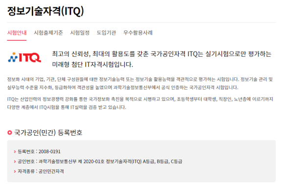 아래 내용은 ITQ에 관한 내용을 캡처하고 있습니다.관심 있으신 분들 보세요~
