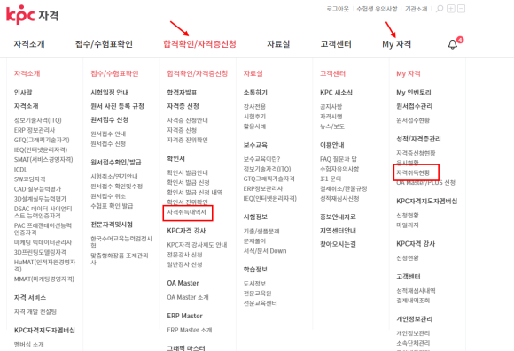 검색하시고 사이트에 들어가시면 상단메뉴 자격인증을 누르시고 들어가시면 됩니다.