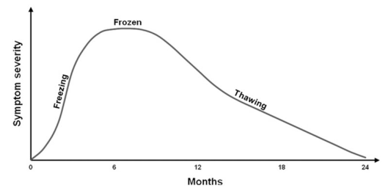 오십견이란? 우리가 많이 들어본 오십견의 정확한 명칭은 유착성 관절낭염(adhesive capsulitis)입니다!또는 동결견(frozenshoulder)이라고 합니다.