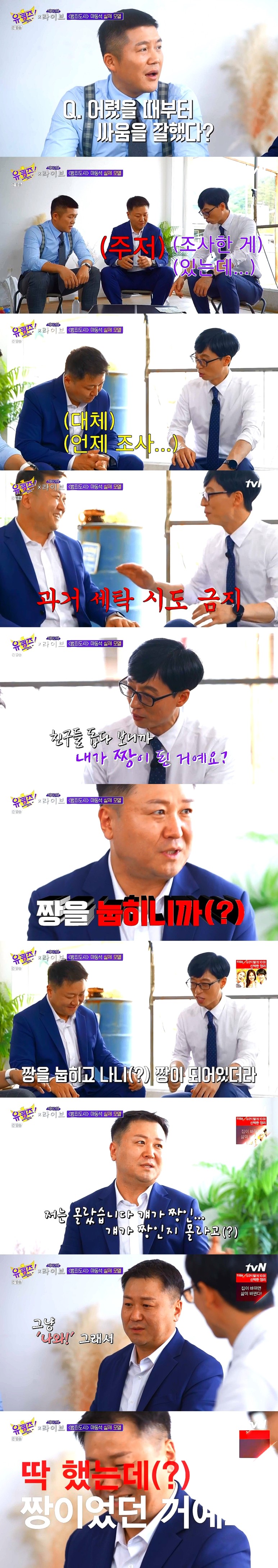 근데 어렸을 때부터 싸움을 잘했냐고 물었더니 윤석호 경감이 당황하고 있어요