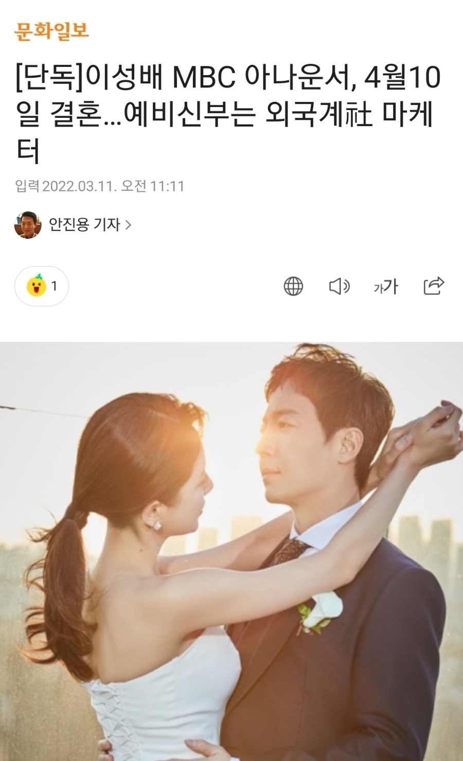 이성배 아나운서의 마음을 사로잡은 예비신부는 외국계 회사에서 세일즈 마케팅 업무를 담당하고 있는 제원언 같은 사진을 보면 연예인 수준의 미모를 자랑할 것 같아요.당연히 영어는 잘하고… 능력이 좋아 보여요.이 아나운서 측근은 작년 말 상견례 후 조용히 결혼을 준비 코로나19에서 결혼일 결정을 놓고 고민이 많았고 이번에 결정했어요.