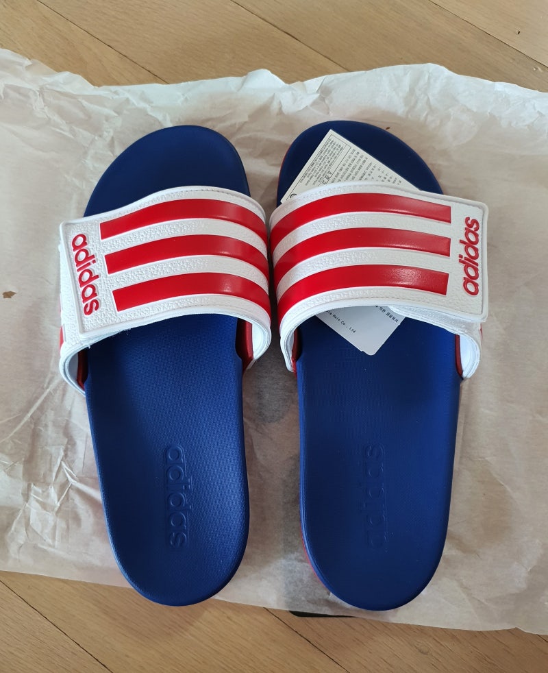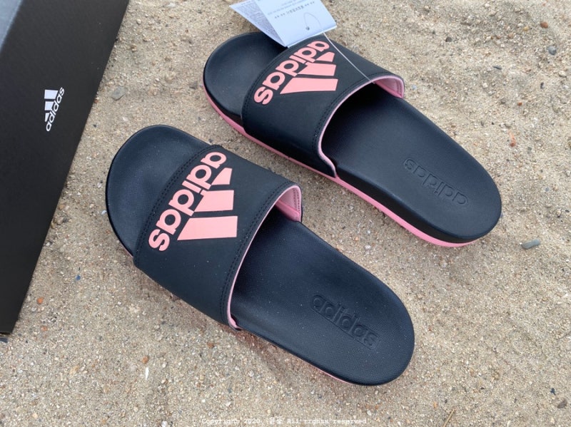 아디다스 아딜렛 컴포트 슬리퍼를 꺼내면 바로 이런 모습.