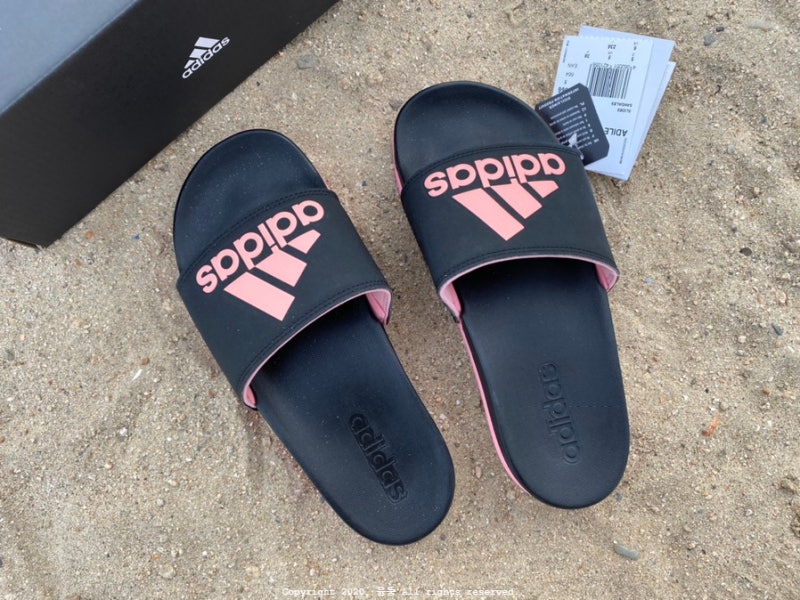 발볼이 넓은 편인데 아디다스 슬리퍼 벨크로로 조정 가능하고 색상도 너무 예쁘네요.