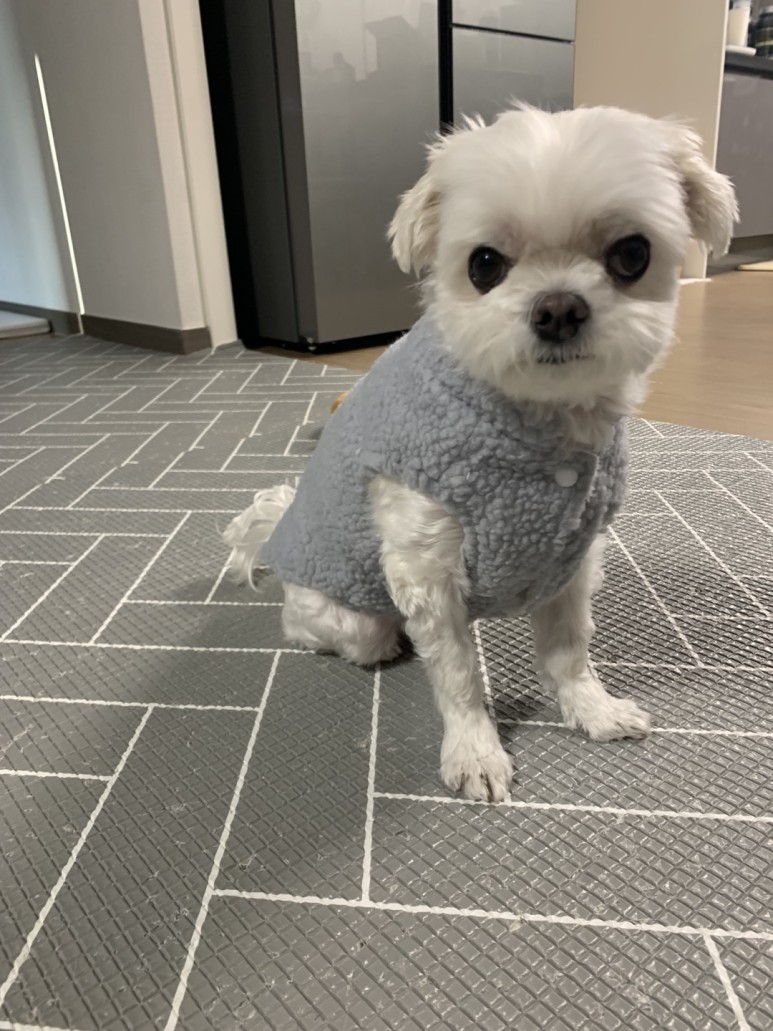 반려견이 눈이 약해서 다른 말티즈보다 커요. 먼지가 잘 들어가는 편이고 또 눈 주위의 털이 조금 길어도 눈을 자극하여 충혈이 잘 되는 아이이므로 눈 주위의 털도 눈에 자극이 가지 않도록 어쨌든 짧게 유지하는 것이 좋다고 해 주시고 눈 주위의 털도 짧게 유지하고 있습니다.