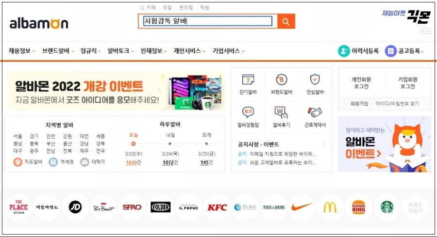 저는 알바몬에서 시험감독 알바를 알아보고 있었어요지금도 회사에 다니고 있지만 주말에 시간이 날 때 시험감독 아르바이트에 지원해서 지금도 틈날 때 하고 있습니다.^^