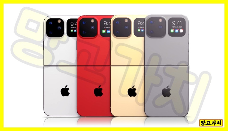 여기에 맞게 반으로 접혀있는 아이폰 Flip 렌더링 이미지도 작년부터 다양한 디자인으로 출시되었습니다