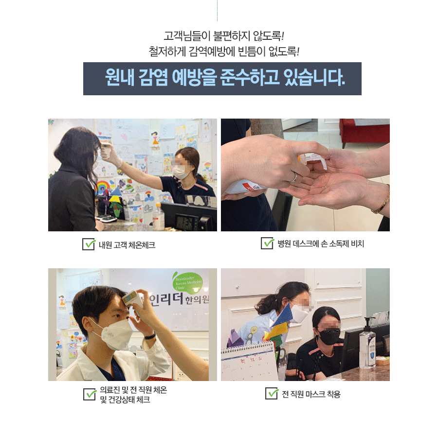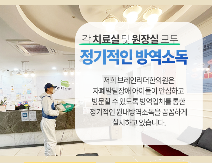 증상이 각기 달라서 아이마다 계획하고 동반질환에 따라 복합적으로 구성해야 하는 만큼 원인에 맞는 훈련과 한약처방을 진행하고 있습니다. 강박적인 사고가 심한 경우 위장과 대장경락에 관여하는 한약을 처방하여 전체적인 몸의 열을 식힌 후 뉴로피드백을 통한 장비훈련을 실시하고 있습니다.