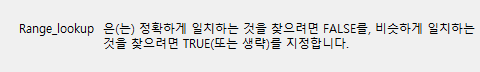 우리가 나중에 조사할 네 번째 항의 값을 FALSE(정확하게 일치)라고 할 경우,