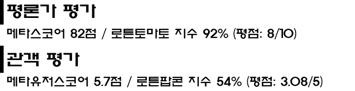 서사적인 부분에서는 많은 약점을 드러내고 있기 때문에 호불호가 갈리지만, 액션 시퀀스의 퀄리티에 있어서는 큰 이견이 없는 작품입니다.