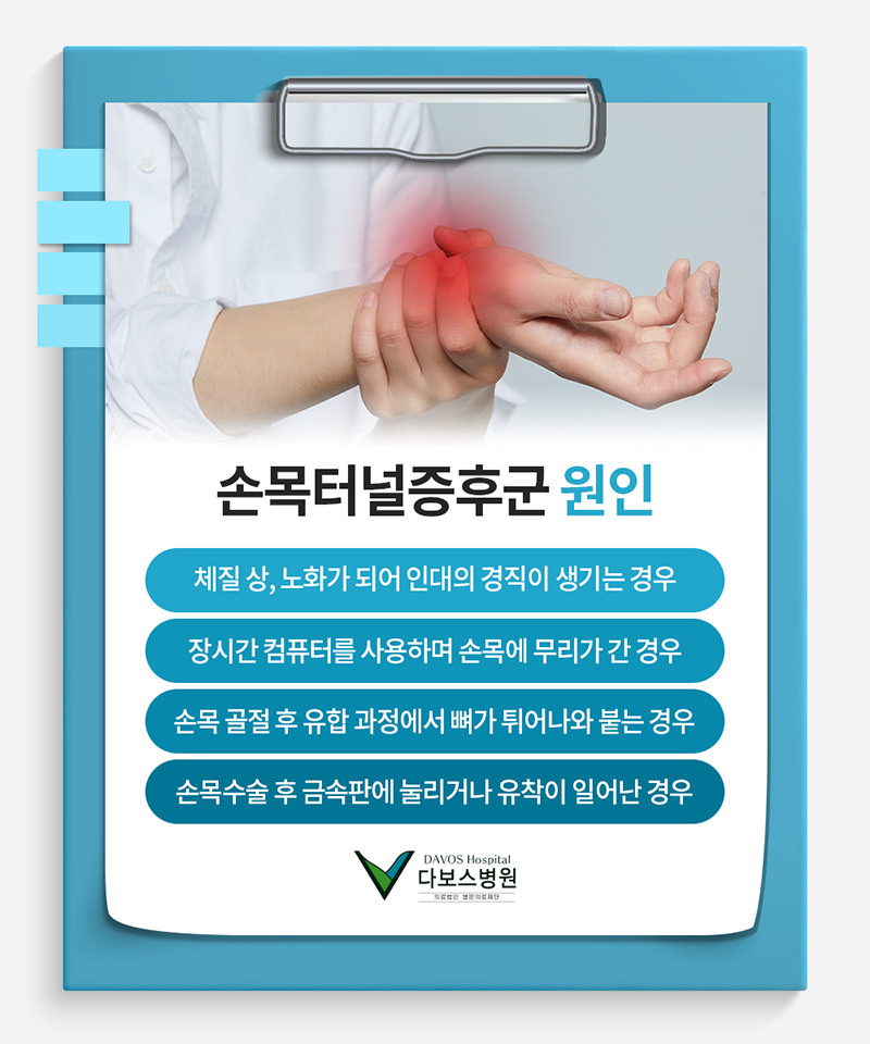 많은 분들이 손목터널증후군이 있어도 잠시 쉬면 증상이 완화되기 때문에 단순한 저림 정도로 해서 병세를 악화시키는 경우가 많습니다. 따라서 손목 통증이나 저림 증상이 푹 쉬고 약을 먹어도 낫지 않는다면 병원에 들러 정확한 검사부터 받는 것이 좋습니다.