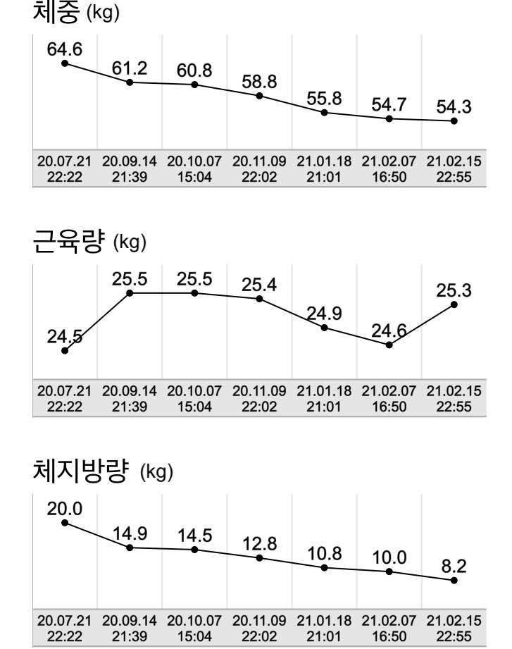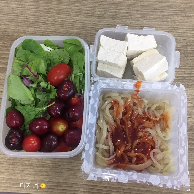 – Dinner: brown rice + humpseed, broccoli, dried squid, kimchi, vegetables, one and a half rice cakes.