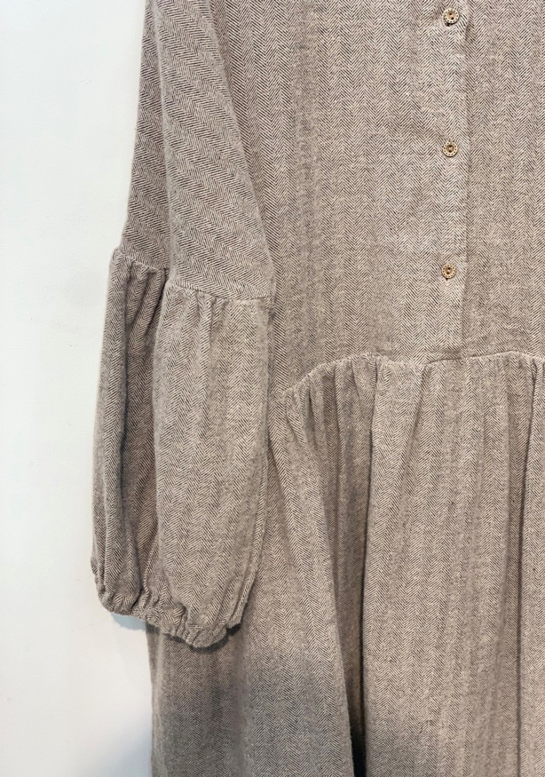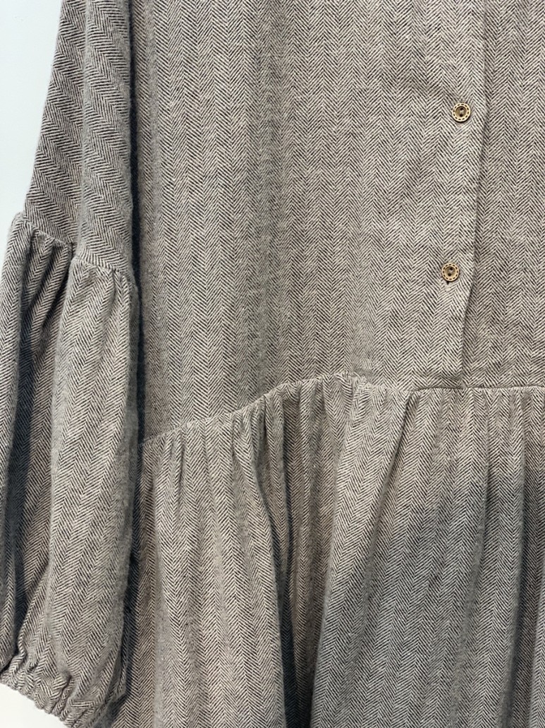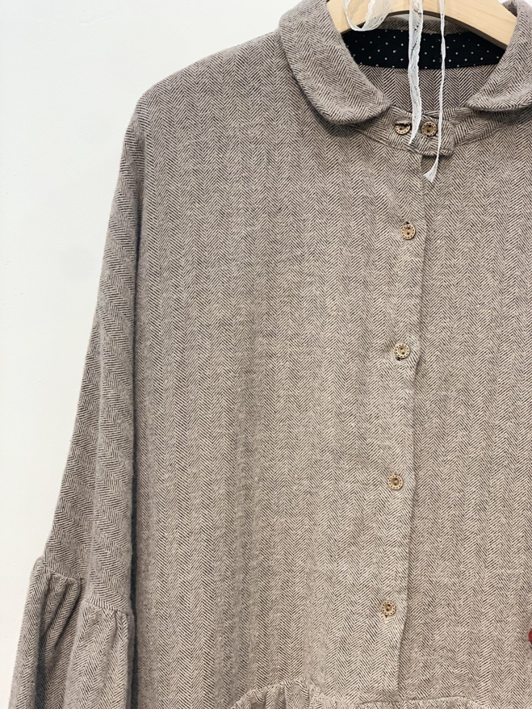 깔끔하고 예쁜 라운드 카라 디자인의 반오픈형 헤링본 원피스입니다