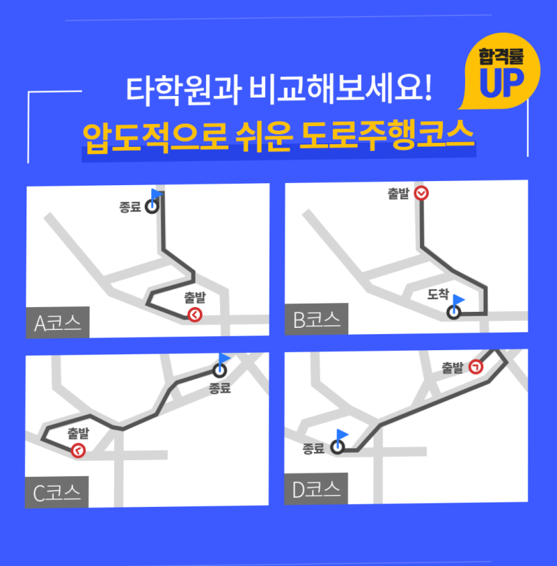 도로 주행 코스는 총 4개의 지정 코스가 있습니다.학원에서 시작하여 영태리를 지나 월롱역에서 유턴해 오는 코스진행 학원에서 시작하여 뇌조리 가능 방향으로 돌아오는 길로 코스진행 거의 직진 위주로 되어 있기 때문에 서울에서는 이미 여성 교육생들이 선호하는 학원으로 유명합니다.