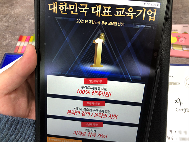 우선 제가 교육을 받은 곳은 한국자격검정평가진흥원이었습니다. 이곳에서는 장학금 혜택을 받을 수 있었기 때문에 금전적으로 전혀 부담이 되지 않는다는 것을 알았거든요.