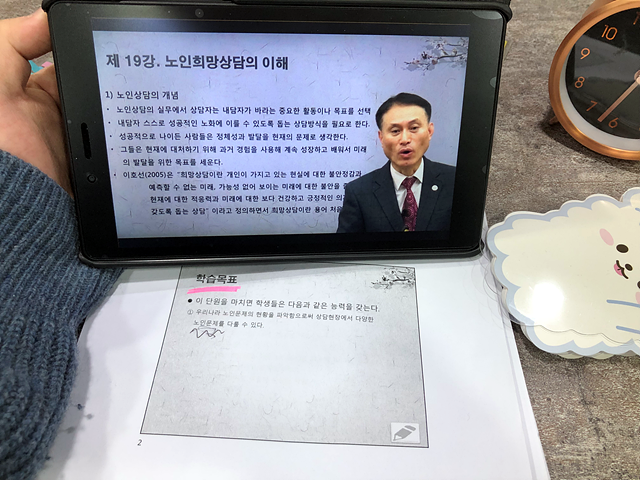 여기서는 노인심리상담사 자격증 교육을 위한 총 25개 강의 전체 커리큘럼과 함께 교안, 문제자료, 그리고 시험응시료까지 모든 과정을 지원 할 수 있었습니다. 경제적으로 부담이 없는 상태에서 학습을 시작할 수 있었던 거죠.