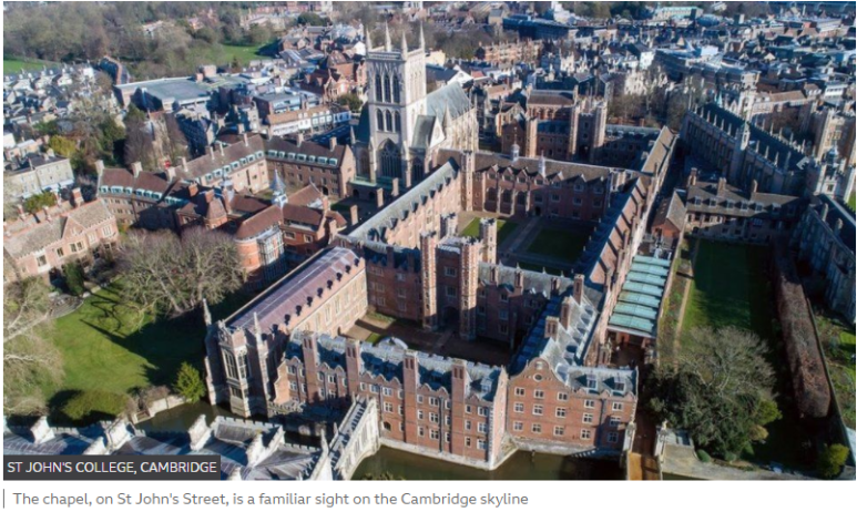케임브리지의 세인트존스 칼리지에 있는 고딕 양식의 예배당은 1860년대에 지어졌으며 높이는 163피트(50m)입니다. 개구쟁이들의 소행으로 추측하는데 정말 귀신이 곡할 겁니다. ㅎㅎㅎ