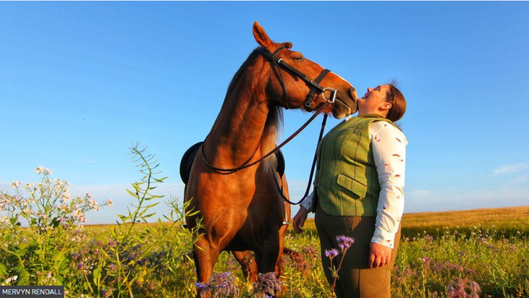 자신의 아내가 말과 교감을 나누고 있는 장면을 찍은 마빈 렌들, 얼마나 통하면 서로 문지르고 냄새를 맡을 수 있을까요?!