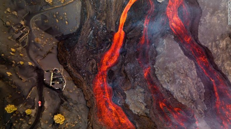 몇 달 동안 용암이 분출하고 화산재나 화산탄도 분출하는 카나리아 섬의 풍경이 이렇게 바뀌었어요.로이터 통신의 항공사진을 받아 CNN이 보도했습니다. 두 번째 쿰브레비에하 화산 용암은 이제 서서히 속도가 빨라져 초당 1미터씩 전진하고 있으며, 이 섬의 지형과 부근 바다의 수온까지 높이고 점점 새로운 분출구가 생겨 언제 그칠지 모르는 상황입니다.