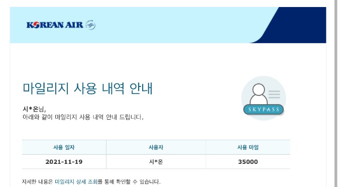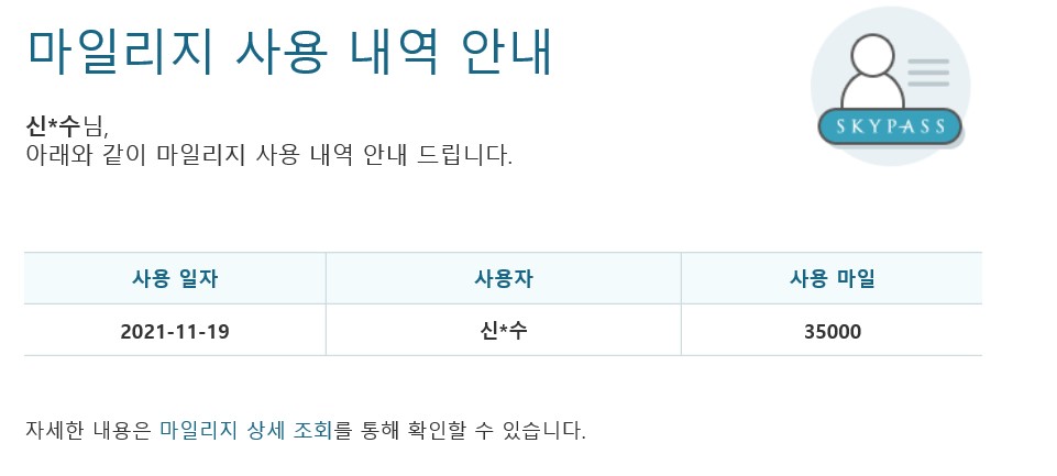 이번에 또 아쉽게도? 쓰게 된 마일리지라서 다시 신용카드를 열심히? 써서 모아볼게요!