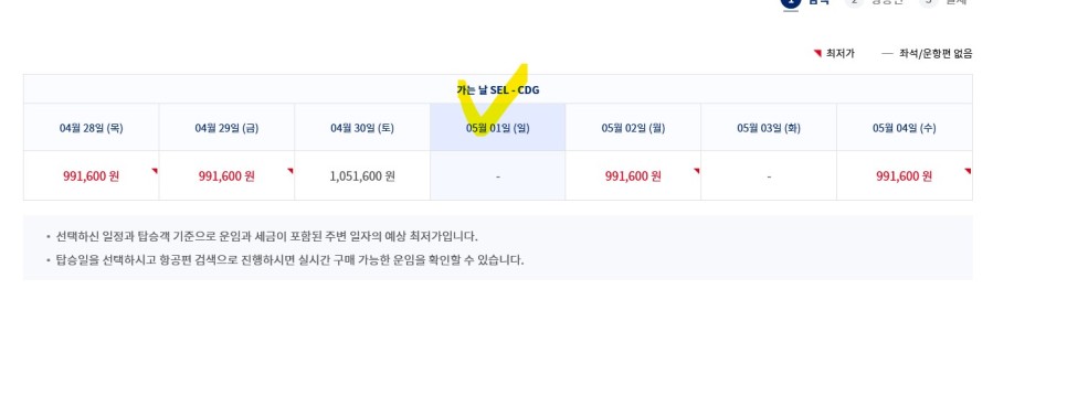 우리는 5월 1일 오후에 출발하고 싶었는데 1일 대한항공편은 없었어요.