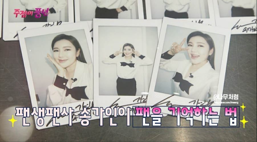 앞서 공개된 추접이 풍년 공식 영상을 보면 송가인은 적지 않은 팬들의 별명을 술술 외우기도 한다.어디로 이사했는지 면허증이 있는지도 다 알고 있더라구. 완전 깜짝^^