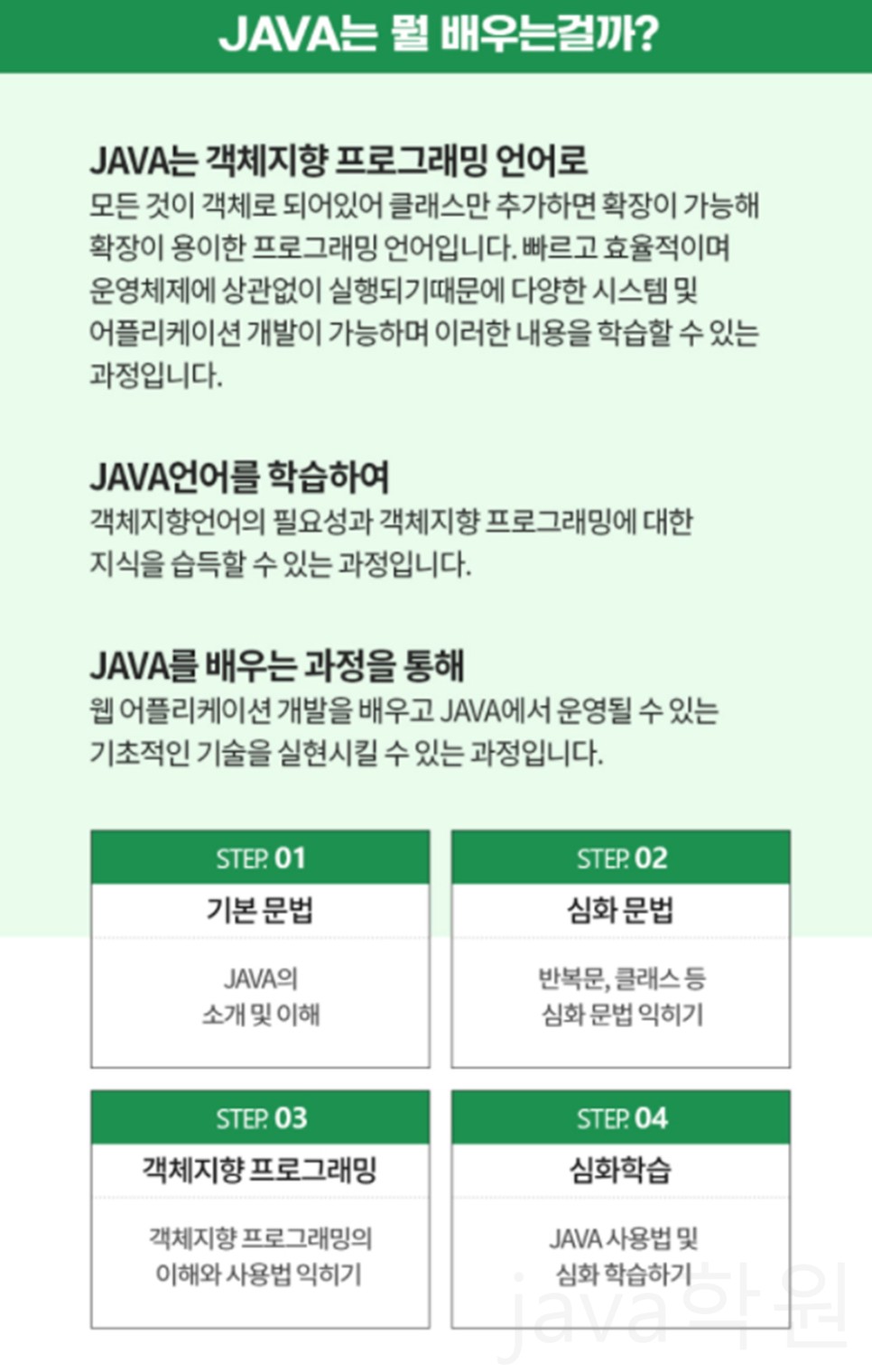 현재 자바 학원에서는 국비지원 과정도 별도로 받을 수 있습니다.