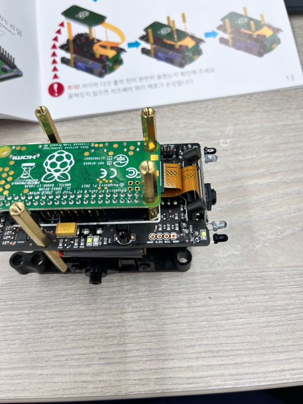 라즈베리 파이와 카메라를 연결할 때 고정장치를 열고 앞이 아닌 뒤로 넣어야 합니다! 그리고 라즈베리 파이를 메인보드에 고정할 때 핀이 완전히 꽂혔는지 확인해야 합니다.