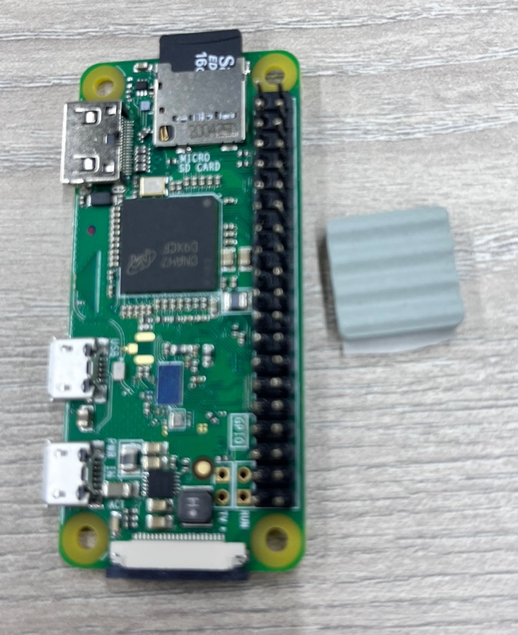 라즈베리 파이히트 싱크 보호 필름 제거 후 라즈베리 파이에 부착합니다.히트 싱크는 술쌀을 시원하게 하기 위한 용도입니다.