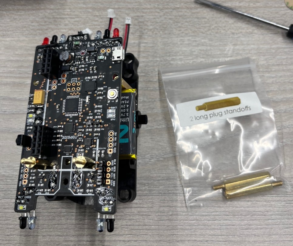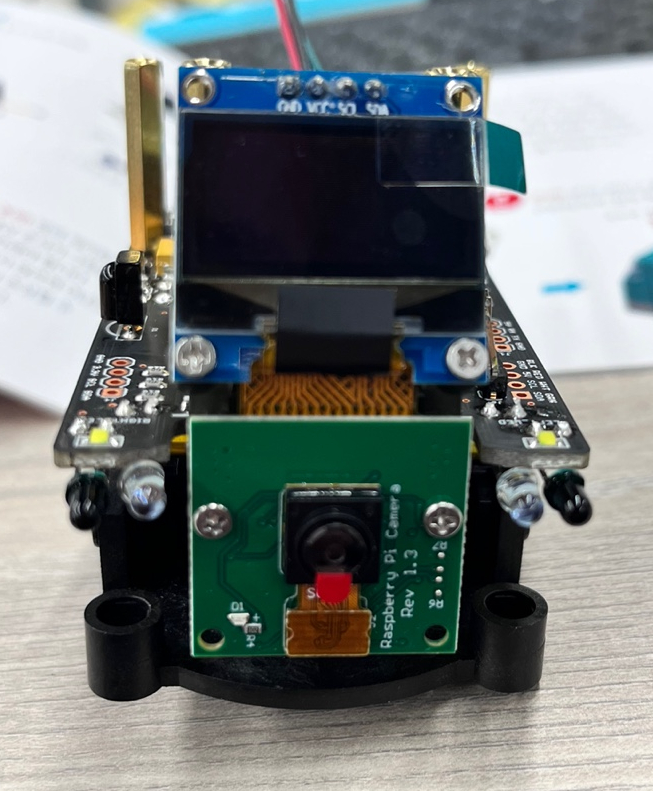 주미보드와 하판을 연결한 라 마운팅 브라켓을 연결해 드립니다.마운팅 브라켓은 카메라와 oled를 지지해 줍니다.