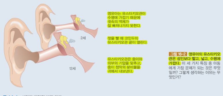 귀중가: 고막 뒤에 있다. 유스타키오관은 비인두로 연결되어 귀의 압력이 균형을 이루도록 한다.귀:비인두와 중이를 연결하는 유스타키오관이 짧고 넓어 수평에 가까워 귀에 문제가 많은 당.국, 하품 등을 할 때 유스타키오관이 열린다 -> 비인두와 중이 사이에 공기가 통한다 -> 그러므로 중이염에 약하다.