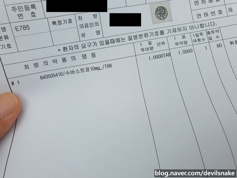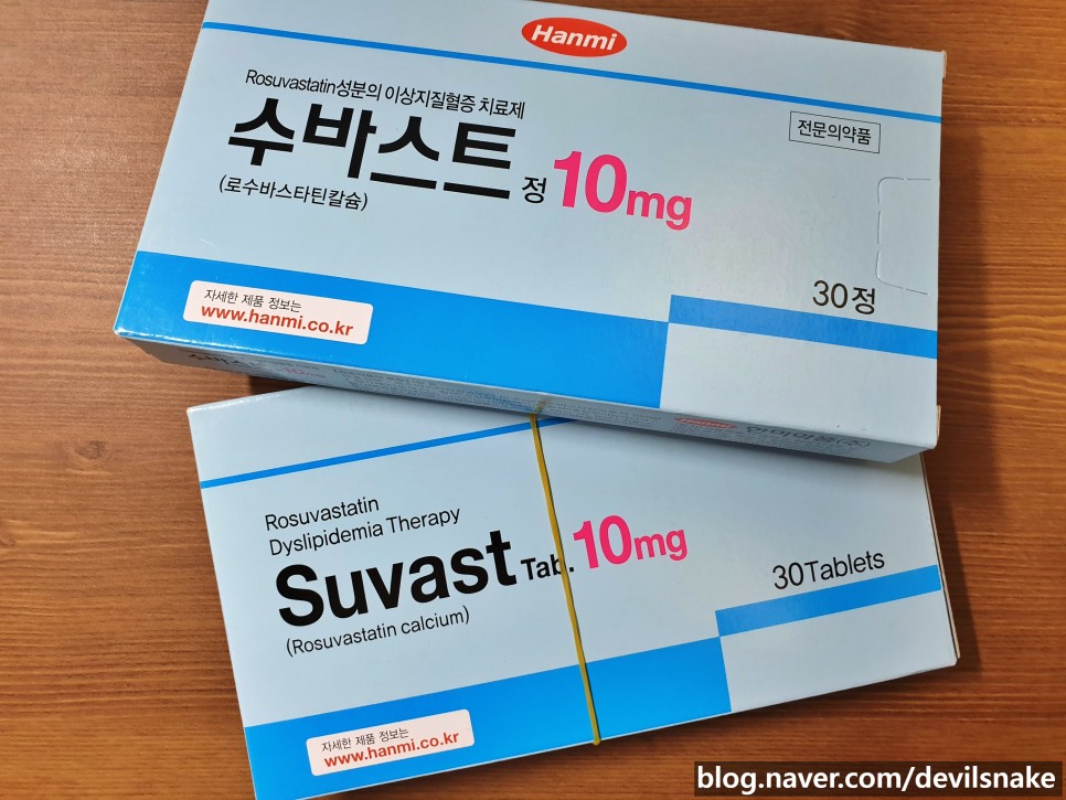 병원에서 처방받아 구입한 고지혈증약 슈퍼스트(Suvast)입니다.몸 곳곳에 나쁜 곳이 많아서 걱정이었는데 콜레스테롤 수치가 떨어져서 다행입니다.
