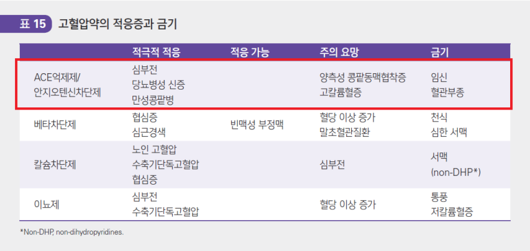 금기 임산부, ACEi, ARB의 사용은 태아의 성장 장애, 신부전, 양수 부족, 태아의 사망까지 초래할 수 있으므로 반드시 피해야 한다.