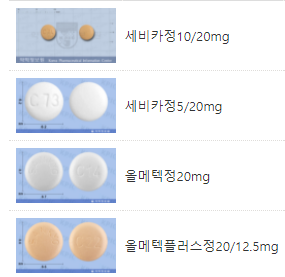 세비카정(CCB와 복합), 올메텍정, 올메텍플러스정 등 Olmesartan도 최고다.Telmisartan 미카르디스정, 플리또정, 트윈스타정 등 여러 곳이 있다.