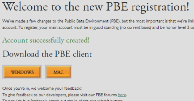 PBE 서버 권한 취득 Welcometothenew PBEregistration! We’vemade fewchange stothe Public Beta Environment(PBE), but the mostimportantisthatwe’relinking newlycreated PBEaccount stoyour main account. Toregister, your main pbesignup.na.leagueoflegends.com