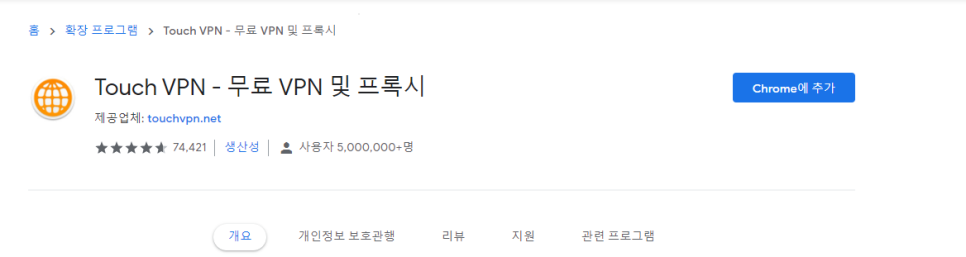 크롬으로 접속한 후 TOUCHVPN을 다운로드 합니다.