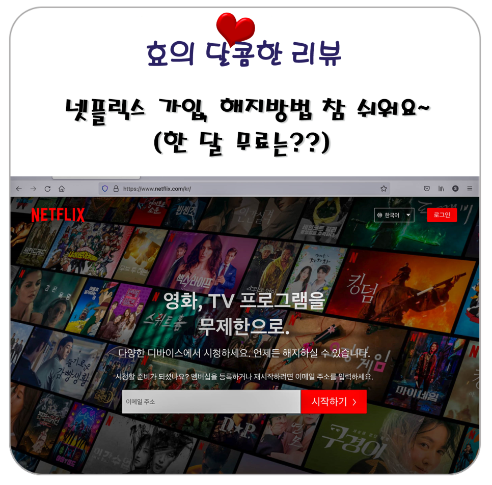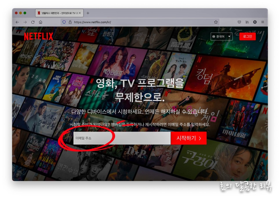 시작하는 왼쪽에 사용할 메일 주소를 넣어주세요.넷플릭스로 제 아이디가 되겠습니다