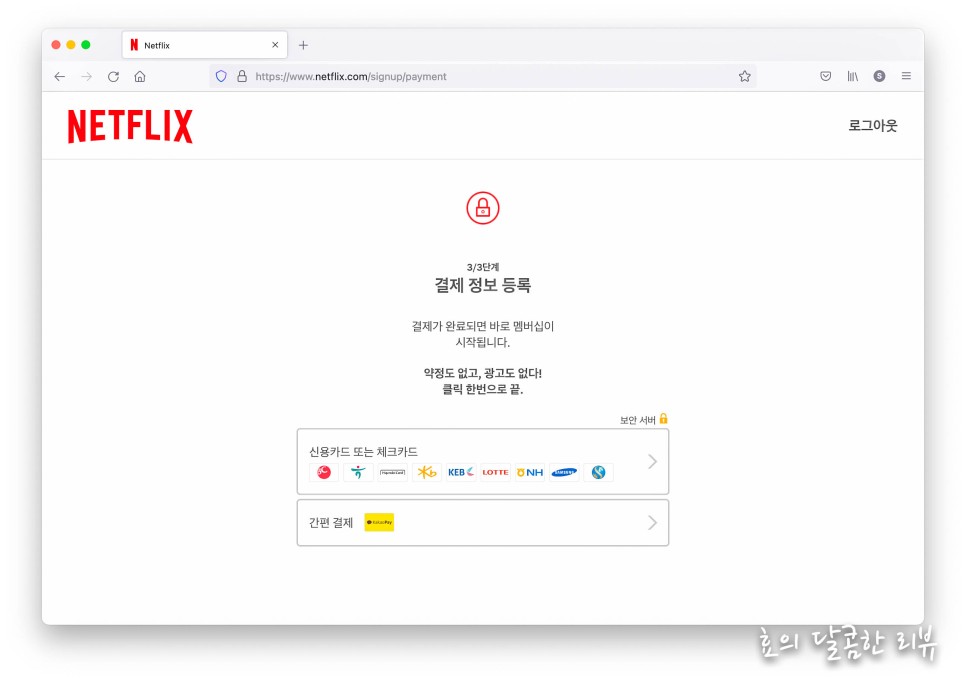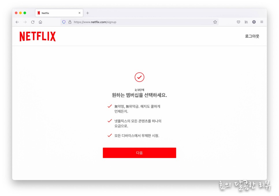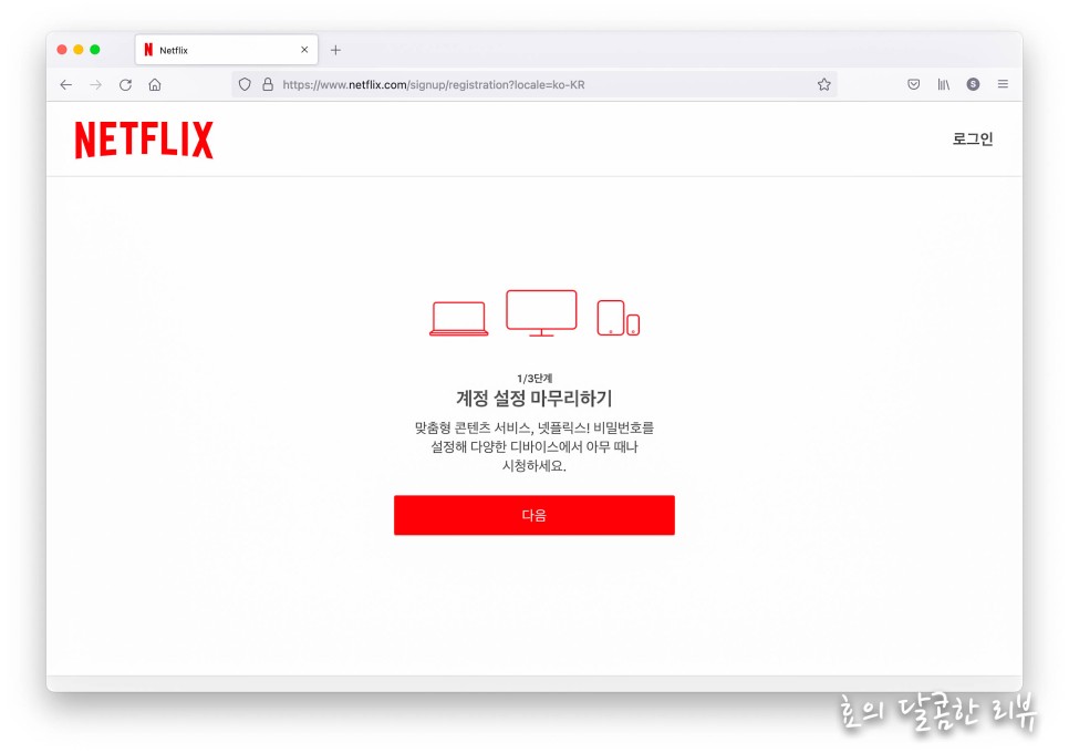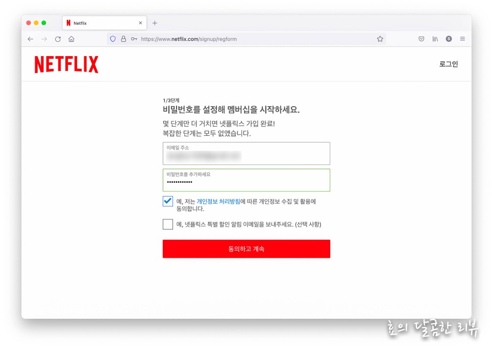 회원가입을 위해 아이디와 비밀번호는 당연하고 심지어 생년월일, 주소까지 입력해야 하는 사이트에 비해 넷플릭스 가입은 정말 쉽습니다.
