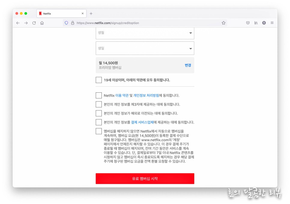 마지막으로, 신용카드 및 간편결제 정보를 등록하시고 아래 약관에 동의하시면 OK!! 바로 멤버십이 시작됩니다.