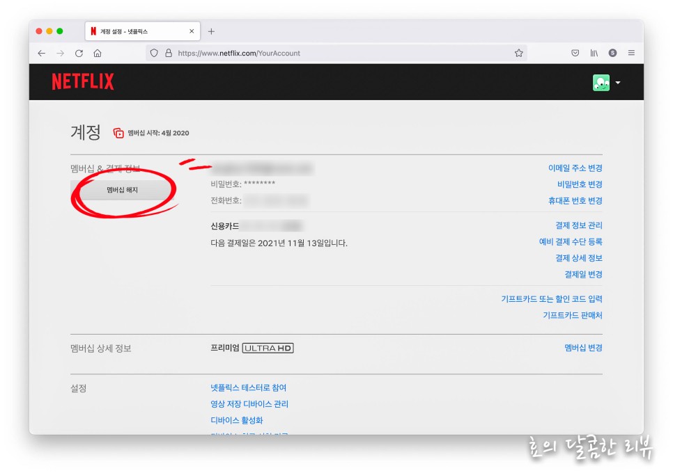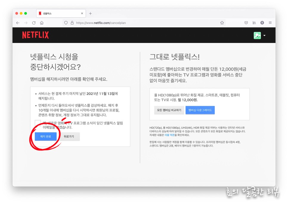 바로 서비스가 중단되는 것은 아니며 결제 전날까지는 재미있는 영화, 드라마를 볼 수 있습니다.잊기 쉬우니까 미리 해두면 됩니다.